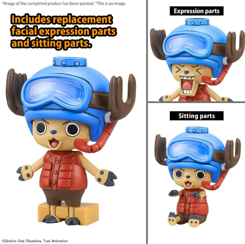 - Chopper comes in a standing pose, a sitting pose, and two types of faces. A variety of expressions can be created with the abundant stickers.