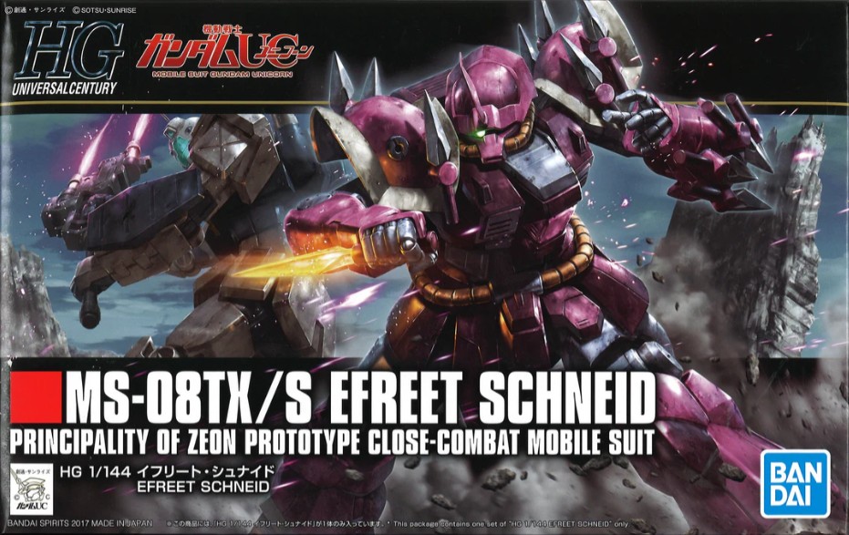 Unleash the power of the Zeon remnants with the Efreet Schneid, a high-grade 1/144 scale model from Bandai’s renowned Gunpla HGUC line! Featured in Mobile Suit Gundam Unicorn, this custom variant of the Efreet is piloted by Daryl Lorenz and stands out with its fierce close-combat design and signature heat dart weapons.