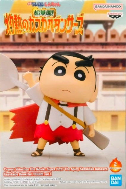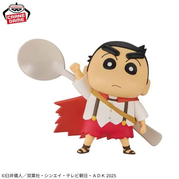 From the hit anime Crayon Shin-chan and its movie “Super Hot! The Spicy Kasukabe Dancers”, Banpresto brings you an adorable figure of Shinchan in his Kasukabe Boueitai (Kasukabe Defense Force) outfit! This collectible figure captures Shinchan’s signature mischievous charm, dressed in a heroic cape and holding a giant spoon as his weapon.