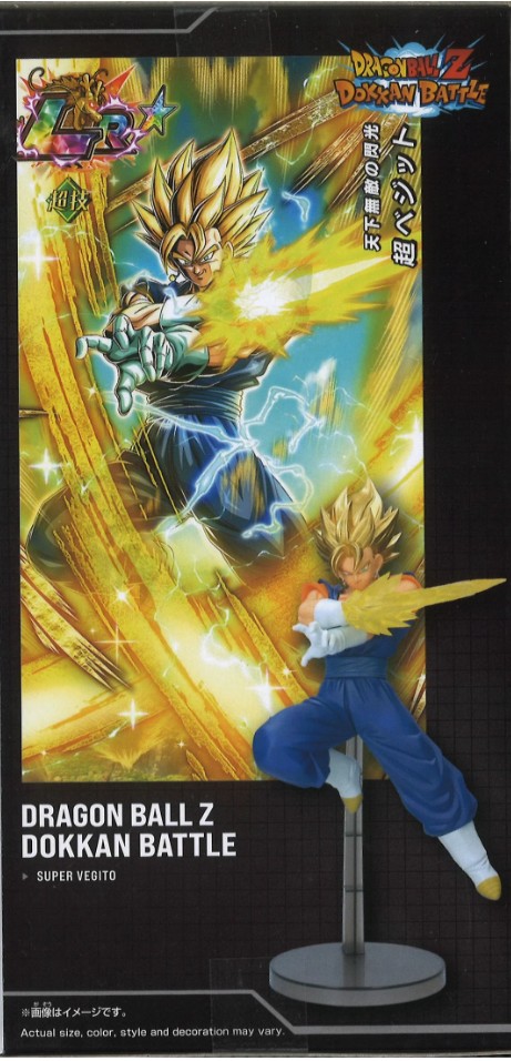 From the mobile game Dragon Ball Z: Dokkan Battle comes a prize figure to mark the 10th anniversary of the battle; Super Vegito! This figure features the fusion of the legendary warriors Goku and Vegeta by way of the Potara Earrings into this unstoppable force of nature! It includes incredible detail and accurate sculpting, along with a special Dokkan Battle-themed base. Show off your Saiyan pride, and don't forget to order your figure today!