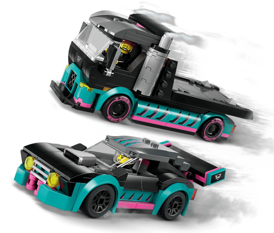 - Toy car transporter – Fans of race cars and trucks can enjoy hours of play with this LEGO® City Race Car and Car Carrier Truck building set for ages 6 and up