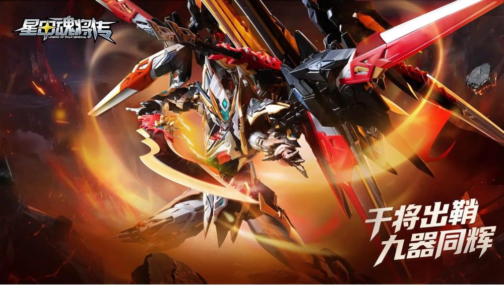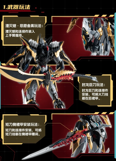 The design showcases sharp armor lines, flowing energy motifs, and an imposing presence — embodying both the artistry of traditional craftsmanship and the power of futuristic technology.