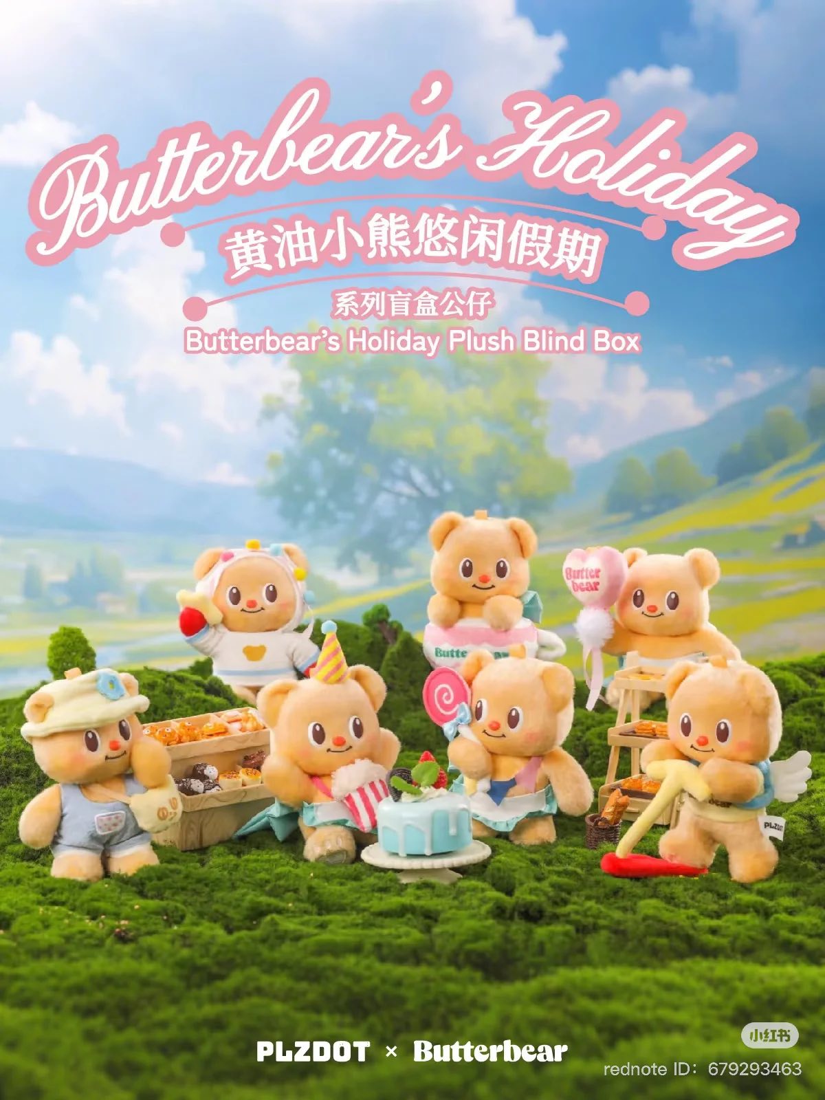 Plzdot X Butterbear's Holiday Plush Series Blind Box 黄油小熊”悠闲假期“系列盲盒公仔