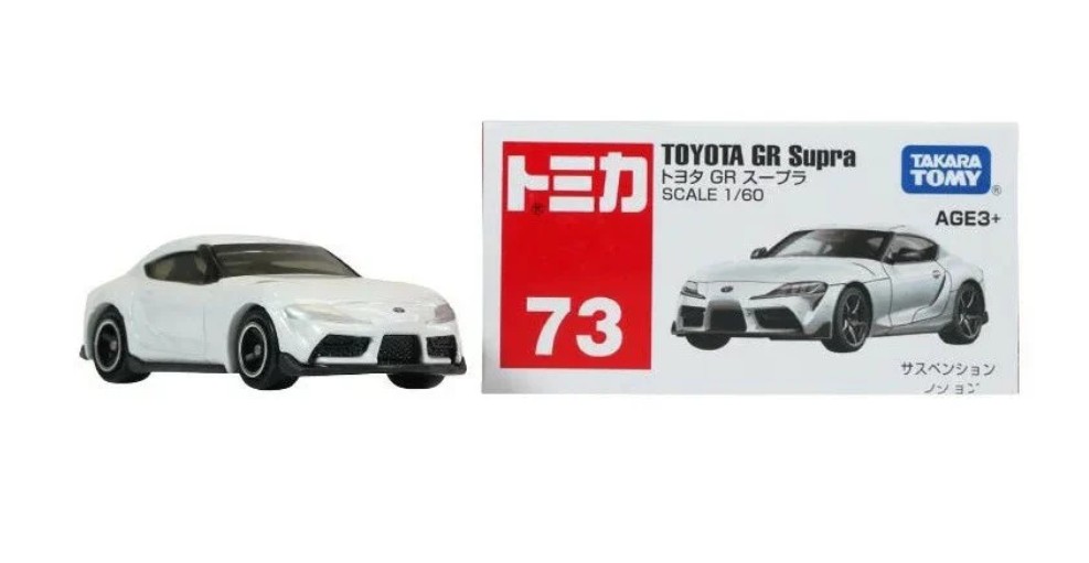 Tomica No. 73 Toyota GR Supra is a toy released within the classic Tomica toyline. The toy includes the main figure of the Toyota GR Supra.