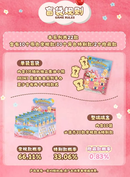 The price shown is per unit (Pack), each pack contains 3 designs, the whole case contains 10 pack blind bags. If you want to buy the whole case, please select 10 when purchasing a single unit, and a whole case will be directly sent with new packaging.