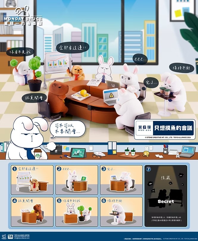 Toys Alliance Monday Bruce Series 6 Blind Box 星期一的布鲁斯系列手办第六弹只想摸鱼的会议系列盲盒 (6+1) (6PCS/CASE)