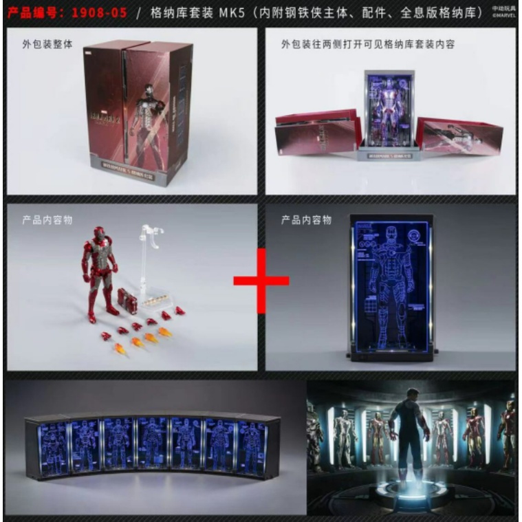 ZD Toys 1/10 Scale - Iron Man + Hall of Armor Armour Set Mark 1, Mark 2, Mark 3, Mark 4, Mark 5, Mark 6, Mark 7
